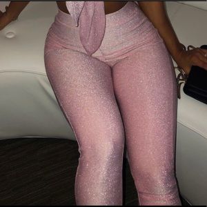 An extremely cute, sparkly light pink set! Size XS amazing for birthdays or going out! Never worn NWT! Bandeau and Leggings set!