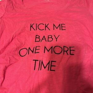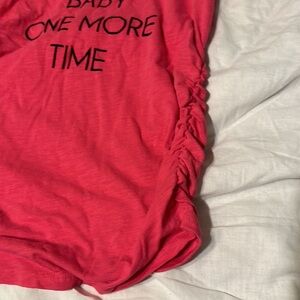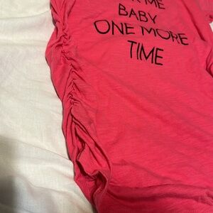 Pink, maternity top that says “kick me baby one more time” never worn. Letter are black. Size maternity small