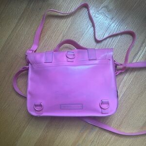 Stylish pink messenger bag/purse. Features a classic design with adjustable straps. Extra straps included to use as backpack, crossbody, or shoulder bag. . great condition. Slight darkening on back near straps, otherwise in great condition.