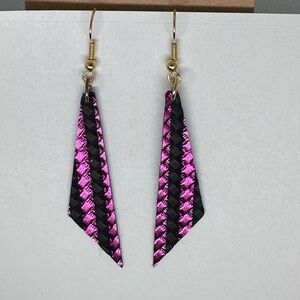 Pink metallic and Black Dangle Earrings handmade gold tone