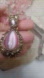 Pink moonglow chunky pendant on a long rose quartz necklace