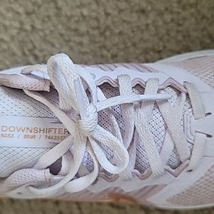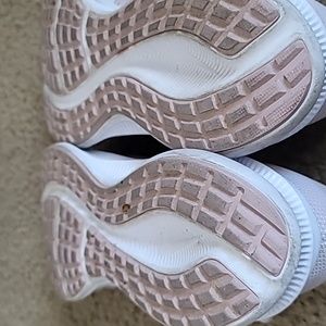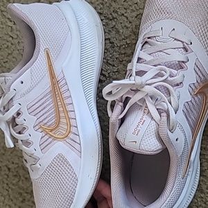 slightly used light pink nikes with a gold Nike sign on out side inner Nike sign metallic pink Nike sign