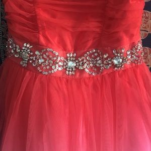 Gorgeous homecoming dress. I wore it once, in perfect condition. It's dark pink at the top and transitions into a light pink and white at the bottom
