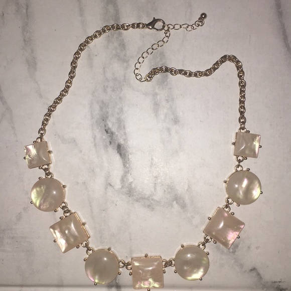 This is a beautiful, faux pink opal style fashion statement necklace. Gold chain with pink opal detailing