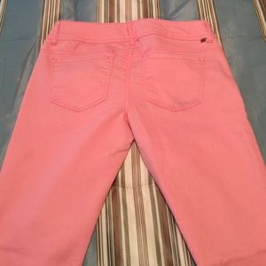 Bubblegum pink pants. Double button. Worn a few times. Only evidence of being worn is a small ink mark on the inside of the left back pocket. May come out in the wash