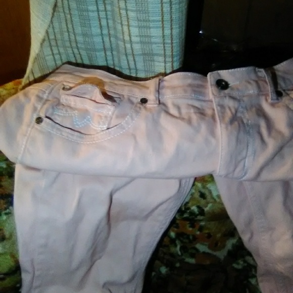 Brand New ..never worn Pink low waist jeans stretch straight cut hipster jeans long pants slim fitting pants bought on WISH for $28.00 and they sent me the wrong size they r a large.waistsize is 763 hip is 97 thigh is 28.5 and length is 100