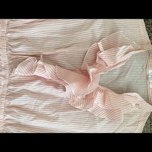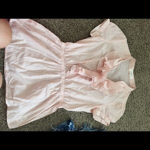 Very cute pink and white pinstripe! Ruffles in front! Love it just doesn't fit me! Worn once!
