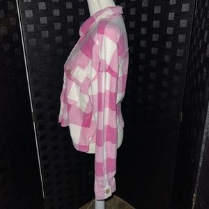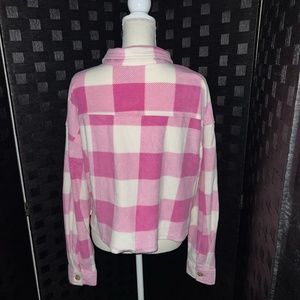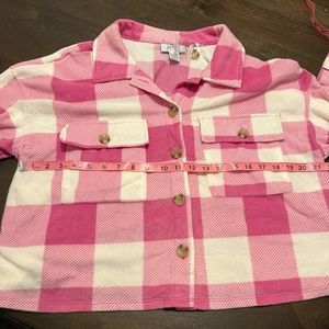 New, fleece pink plaid button down shirt, in the size XL. In the brand Just Polly.