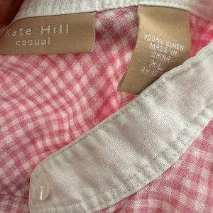 Kate hill pink plaid button up shirt. Can be dressed up or down. Good used condition ~plaid ~button up ~linen ~summer