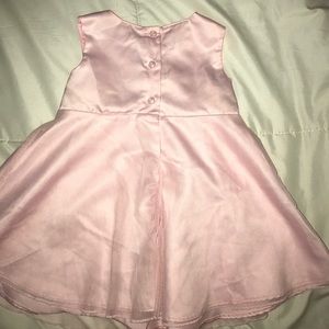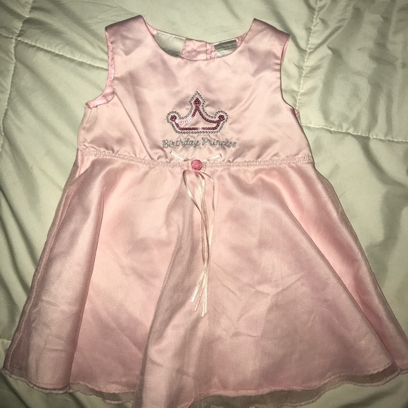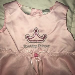 Pink satin and rhinestone first birthday dress for baby girl!! Only worn for a few hours mainly for pictures. She did not eat cake in it. No stains. Non smoking family/house.