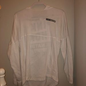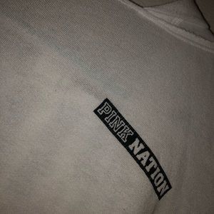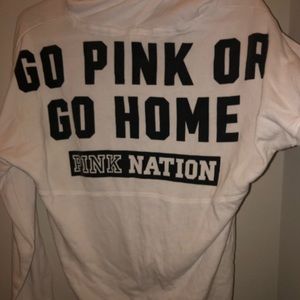 White pull over with hood! Black lettering (go pink or go home). Really comfy for around the house.
