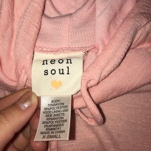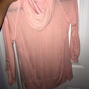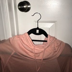 Light pink pullover, lightweight, has hoodie