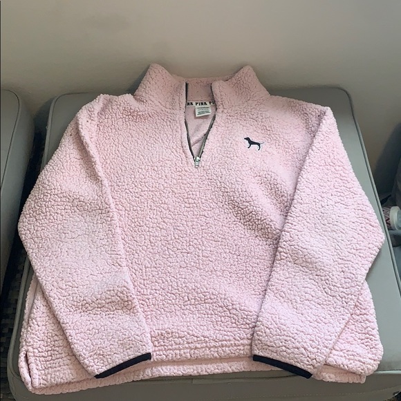 fluffy pink pullover, runs big so if you’re a medium this would work too!