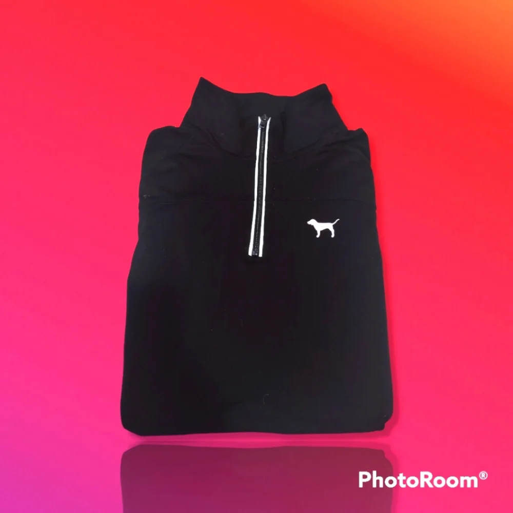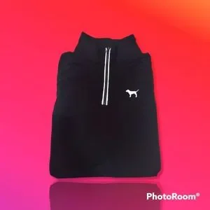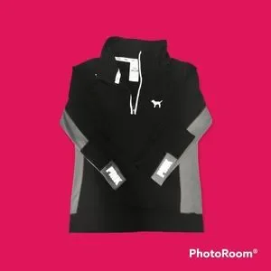 Black, light blue, long sleeve, fitted pullover. Pink brand.