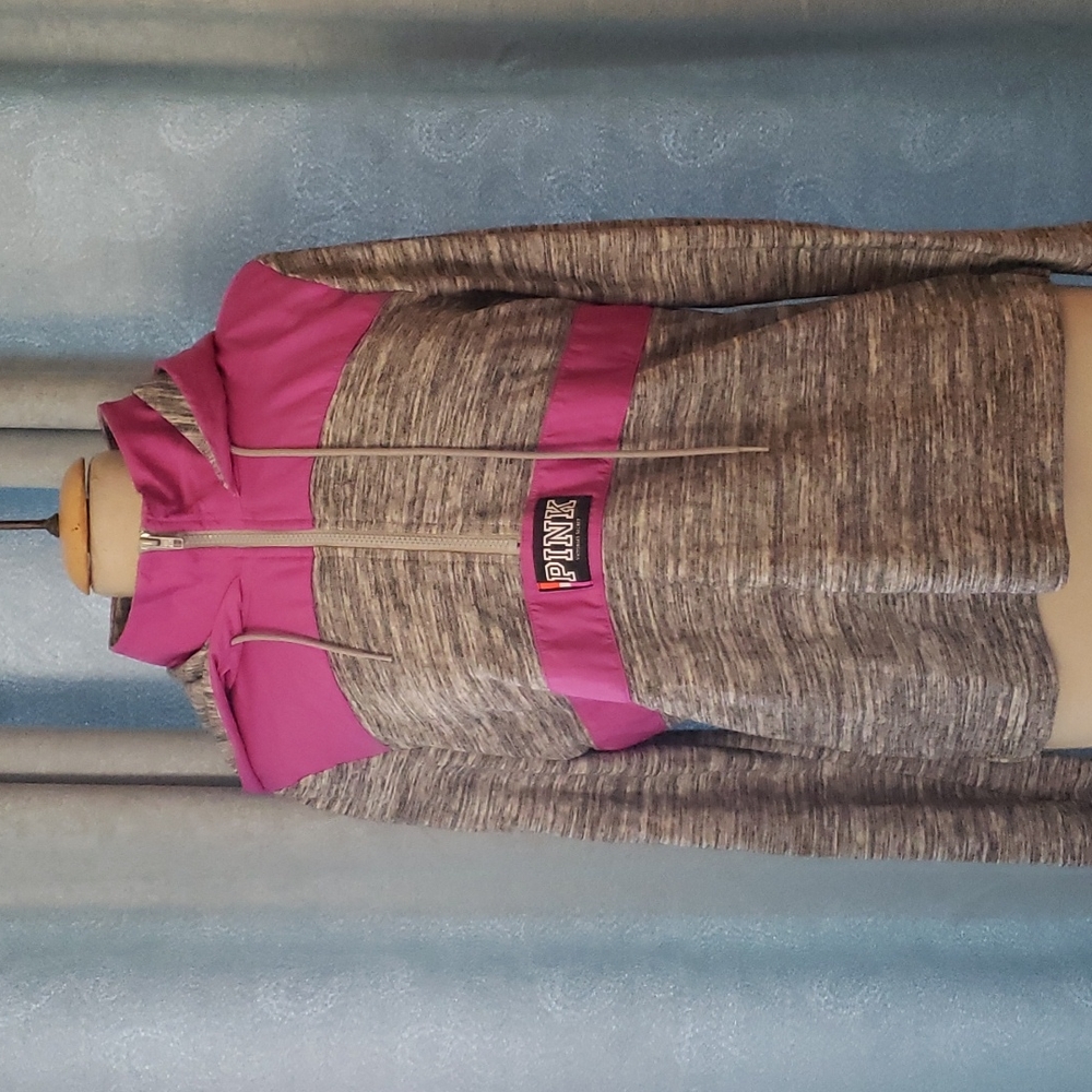 very cute PINK pullover has water-resistant material on hood and shoulders PINK emblems on both front and back gray with magenta
