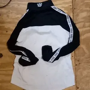 Pink by Victoria's secret black and white long sleeve pullover with logo on front and running down sleeves and on back of the collar on size small