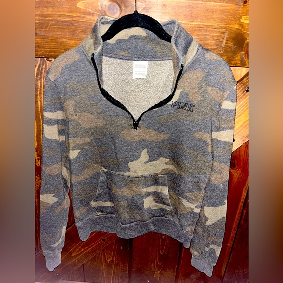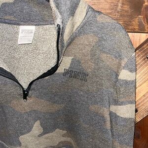 Pink pullover, quarter zip.