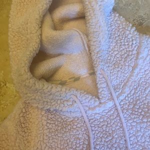 Pink, fluffy, soft, polyester, hoodie, pockets