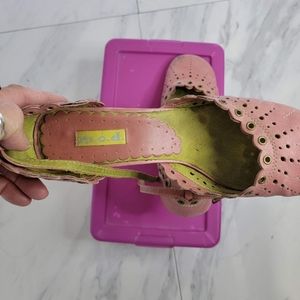 cute and comfy, pink leather pumps with buckled ankle straps (idk what they're called). sticker on bottom is from having the heels retapped (these were a favorite of mine and worn quite often) m.o.d brand size 11