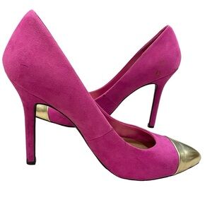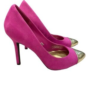 Mossimo pink pumps with gold tips Size 8 4.5” heel Worn once. EUC all flaws pictured