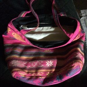 stripes. It also has a zippered compartment on this inside . Purse measurements are 9 wide &