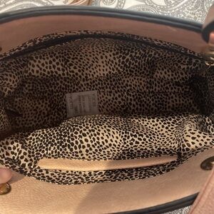 This is a modern pink purse that comes with a front top handle as well as a adjustable body strap. The inside is a pretty pattern and pictures are taken it is in great condition. I ship fast and always include free gifts/ samples in my orders as a surprise. This purse is in wonderful condition I’ve only worn it 2 or 3 times.