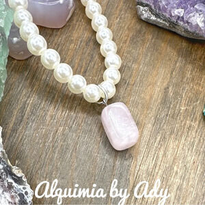 Pink quartz and faux pearls statement necklace