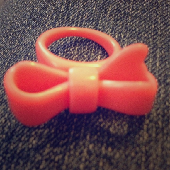 VERY CUTE Pink bow ring . Plastic material.