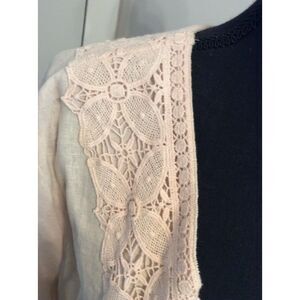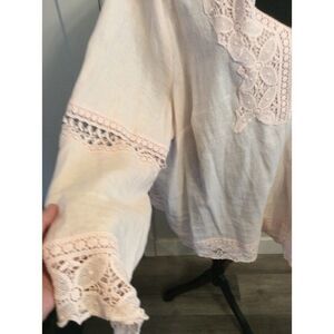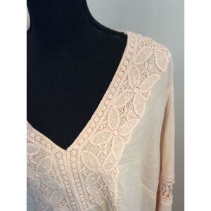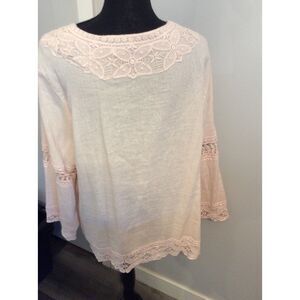 Pink romantic Lace Linen blend Tunic V Neck Plus size 2X