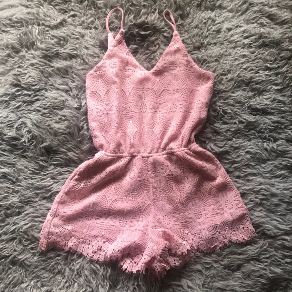 Cute pink romper, Rose pink woven exterior, rose pink polyester interior, near perfect condition, worn once