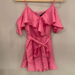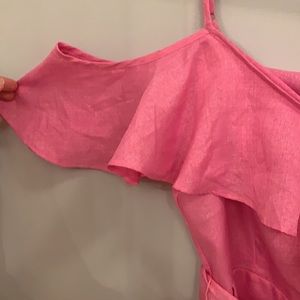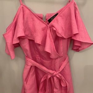 Pink lightweight romper. Has pockets