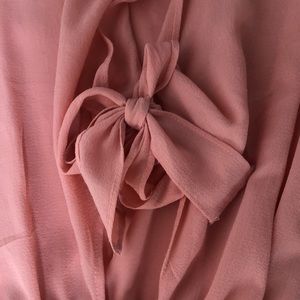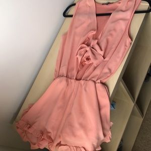 Peach/pink colored romper purchased at boutique in Boston. Ruffles on bottom and ties in the center