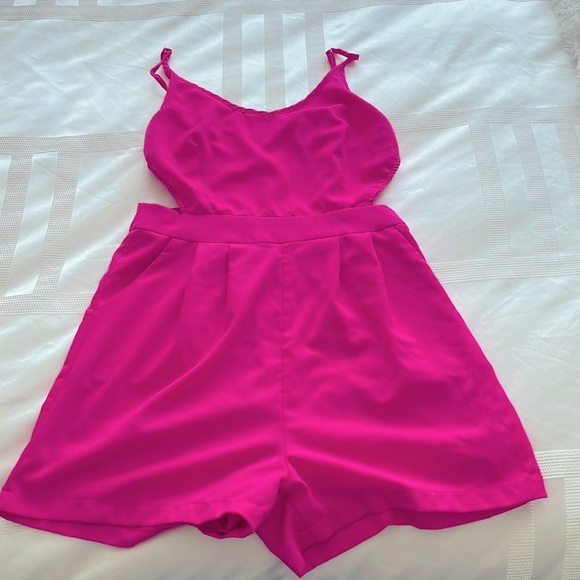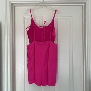 Tea and cup brand romper in a fuchsia pink color size medium. Backless w/ a tie