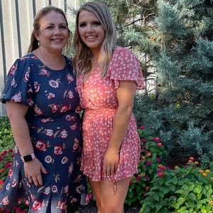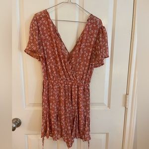 Pink romper with flowers. Worn once. Size S