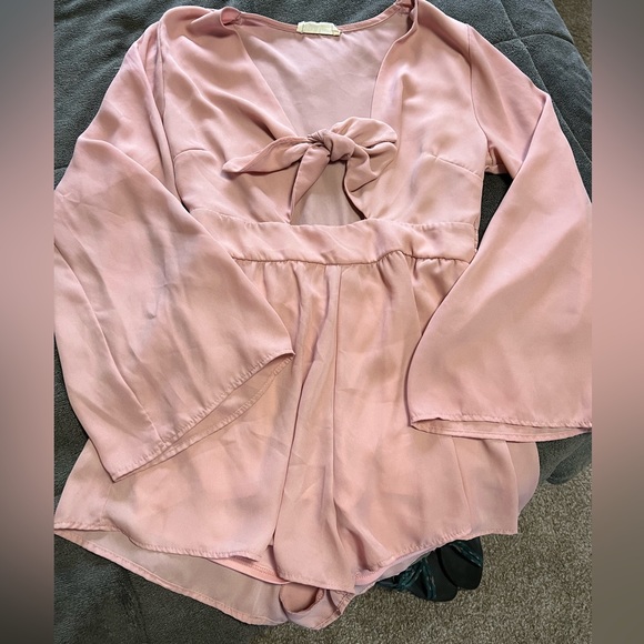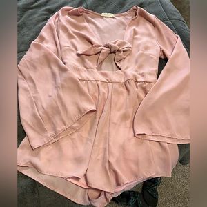 Pink romper. Size medium. Tie keywhole top. Flare sleeves.