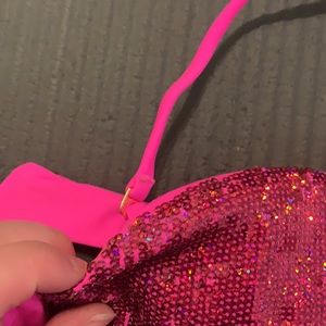 Tie straps, adjustable strapless or halter. Beautiful sequins. Slightly padded. Medium top and large bottom. Offering a BOGO on ALL ITEMS in my closet. Just create a bundle with the price of the higher priced item :)
