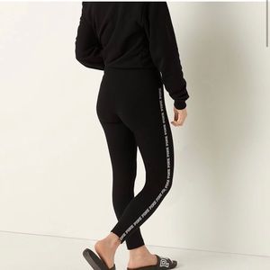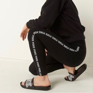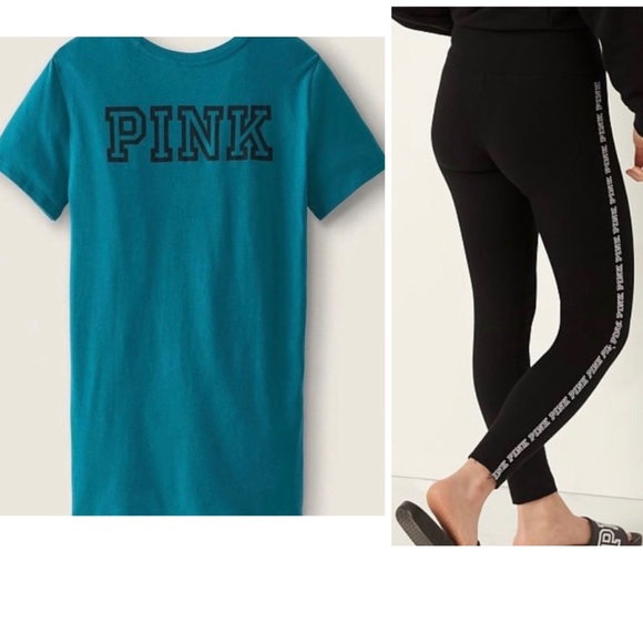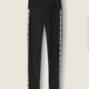 New with tags. It’s a pink from Victoria Secret, black leggings with white logo on both sides. Its High waist, Smoothing waistband, Body hugging fit Breathable