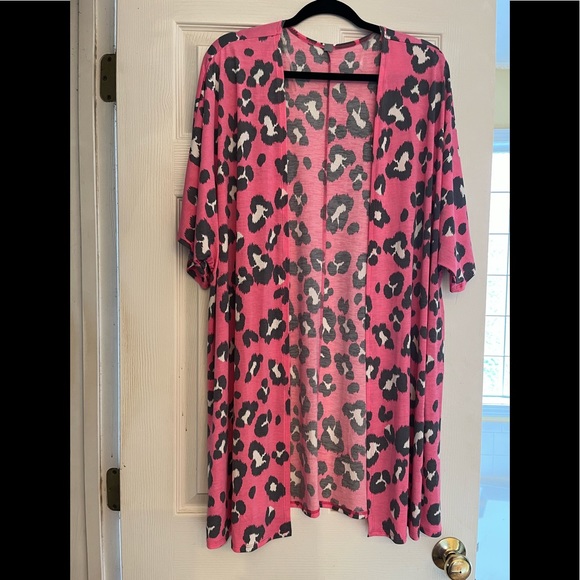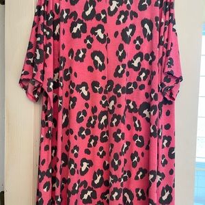 Pink shawl with animal prints. Short sleeve. Lightweight material. Covers the booty area. L/XL in size. No tags but has never been worn.
