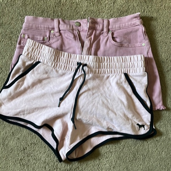 Pink shorts. 1 Jersey 1 jean. Size 10 jean shorts, Large jersey type shorts. Smoke free home.