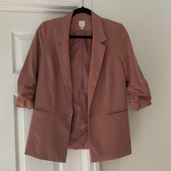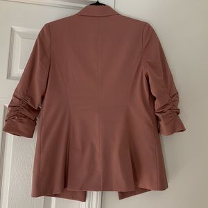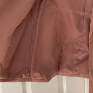 Single button blazer with two vents in back. Fully lined, no shoulder pads. Kind of a muted dusty pink