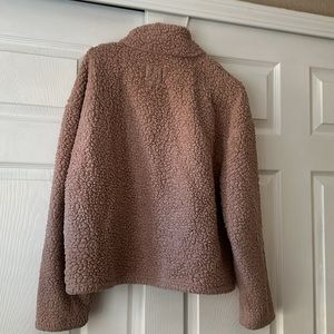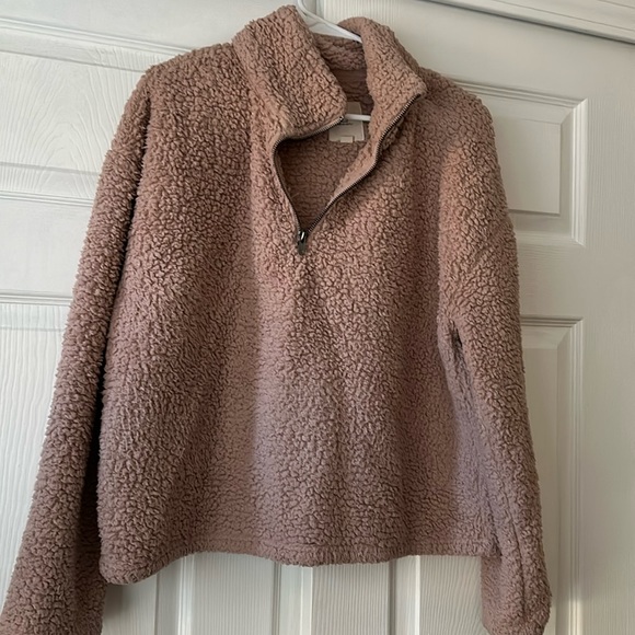 Pink soft cozy pullovet. Zip up neck/collar. 100 % polyester size medium