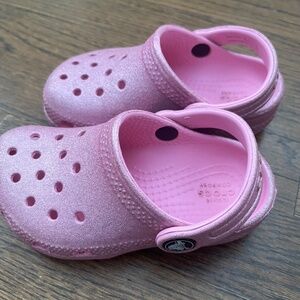 Pink sparkly toddler crocs (size 7)