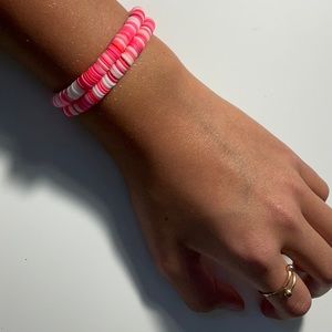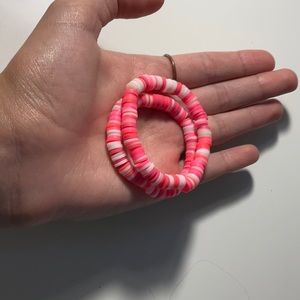 These two bracelets are dark pink, Light pink and white.
