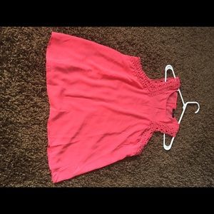 New!! Pink sleeveless top with crochet around the arms. Semi sheer. Purchased from the Mint Julep Boutique. No defects just couldn't return. From a smoke free home.