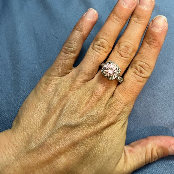 Silver ring with CZ and pink stone Never worn Size 6.5/7 Beautiful ring, no blemishes. Is taller than most rings (pictured)
