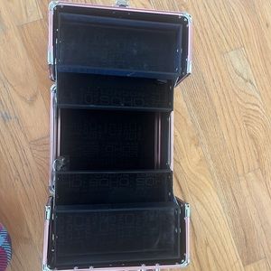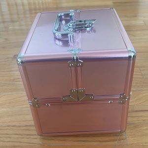 Pink storage box.