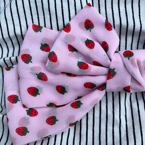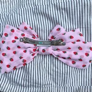 Pink strawberry hair bow, barrette clip, coquette cottagecore Y2K indie boho. Measures 8.75" across at widest point. Excellent condition pre owned. Originally purchased from Dolls Kill.
