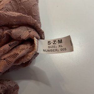 Pink stretchy long sleeve mock turtleneck lacy sheer blouse/top size medium