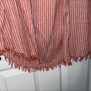 Pink and white striped button down! This shirt is distressed at the bottom and would be adorable for the beach or as a summer over-shirt!