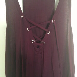 Pink super soft racer back top, size small. This top has a lace and up front. This maroon top is in great condition with no holes, rips or stains.